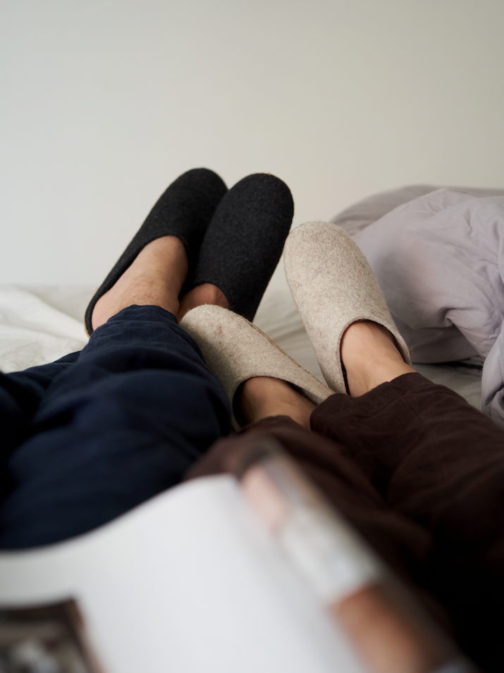 Med et enkelt og tidsløst, skandinavisk design passer vores lækre filttøfler perfekt ind i alle hjem, uanset stil. Denne model har en meget let og elegant ruskindssål, lavet af økologisk kvalitetslæder. Tøflerne er enormt behagelige at have på og så er de tilmed temperaturregulerende, hvilket betyder, at de kan bruges hele året rundt - ikke kun når det er koldt udenfor.